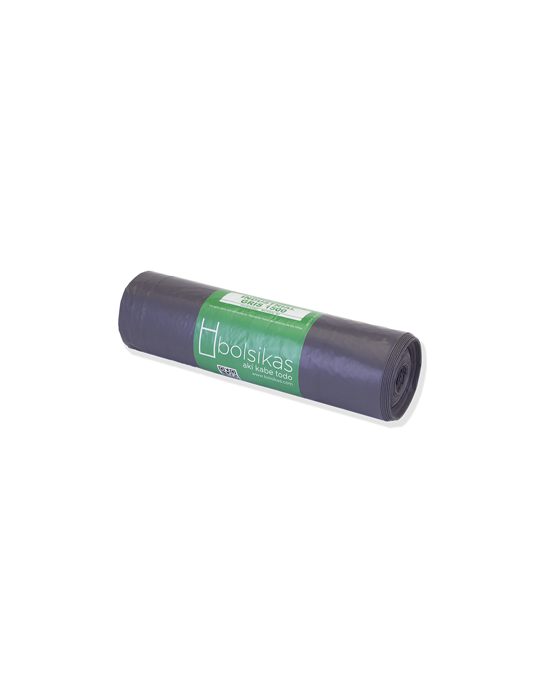 Bolsa de basura 85x105 gris. Galga 140. Baja densidad. Peso rollo: 540 grs (+/-). Para cubos de 100 litros. Bolsa de basura industrial 1500 con soldadura lateral. Uso indicado en sector como: Hostelería, limpieza, industria, lavanderías, jardinería y hospitalario. Caja de 25 rollos de 10 bolsas.